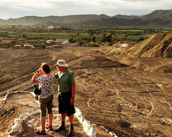 Nous visiterons aussi le géoplyphe “Métier à tisser” situé à quelques minutes des aqueducs cantalloc. Il faudra Monter une petite colline de douze métres qui servirá de point de vue naturel pour voir la figure fascinante et nous allons également avoir une idée claire de la façon dont ont été faites ces lignes énigmatiques dans les plaines du désert.